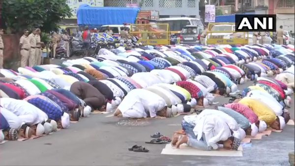 ಮುಂಬೈಯ ಹಮಿದಿಯಾ ಮಸೀದಿ ಹೊರಗೆ ಜನರು ನಮಾಜ್ ನಲ್ಲಿ ಭಾಗವಹಿಸಿದ್ದು ಕಂಡುಬಂತು.