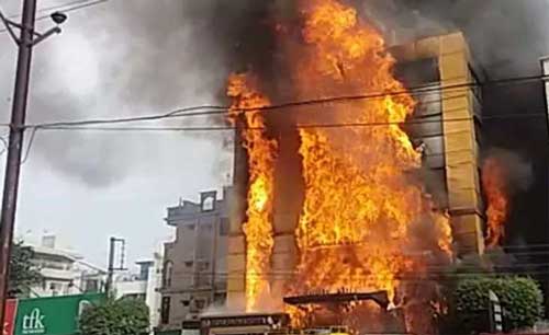 25 ಕೋಣೆಯನ್ನೊಳಗೊಂಡ ಐಶಾರಾಮಿ ಹೋಟೆಲ್ ನಲ್ಲಿ ಬೆಂಕಿ ಹೊತ್ತಿಕೊಳ್ಳಲು ಕಾರಣ ಏನೆಂಬುದು ತಿಳಿದುಬಂದಿಲ್ಲ. ಎಎನ್ ಐ ನ್ಯೂಸ್ ಏಜೆನ್ಸಿ ಹೋಟೆಲ್ ಮುಂಭಾಗ ಬೆಂಕಿಯಿಂದ ಹೊತ್ತಿ ಉರಿಯುತ್ತಿರುವ ಫೋಟೋವನ್ನು ಶೇರ್ ಮಾಡಿದೆ.