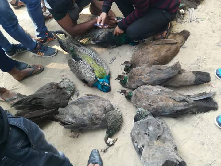 ಬಿಜ್ನೋರ್​: ಜೈಪುರದ ಉಪ್ಪುನೀರಿನ ಸರೋವರದ ಬಳಿ 10,000ಕ್ಕೂ ಅಧಿಕ ವಲಸೆ ಹಕ್ಕಿಗಳು ಸತ್ತುಬಿದ್ದಿರುವುದು ಈಗಾಗಲೇ ವರದಿಯಾಗಿದೆ. ಅಲ್ಲದೆ ಉತ್ತರಪ್ರದೇಶದ ಬಿಜ್ನೋರ್​​​ನ ಕಬ್ಬಿನಗದ್ದೆಯಲ್ಲಿ ಎಂಟು ನವಿಲುಗಳ ಮೃತದೇಹ ಸಿಕ್ಕಿತ್ತು. ಇದರ ಬೆನ್ನಲ್ಲೇ ಮತ್ತೆ 9 ನವಿಲುಗಳ ಮೃತದೇಹ ರಾಜಸ್ಥಾನದ ಅಲ್ವಾರ್​ ಜಿಲ್ಲೆಯಲ್ಲಿ ಗುರುವಾರ ಪತ್ತೆಯಾಗಿದೆ. ಇದು ಪರಿಸರ ತಜ್ಞರಲ್ಲಿ ಆತಂಕ ಮೂಡಿಸಿದೆ.