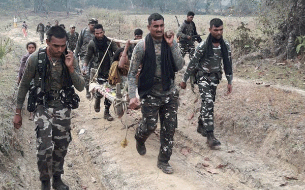 ಛತ್ತಿಸ್ಗಢದ ಬಿಜಾಪುರದ ಕಾಡಿನ ಪ್ರದೇಶ ಪಡೇಡಾದಲ್ಲಿ ಘಟನೆ ನಡೆದಿದ್ದು, ಕಾಡಿನ ಮಧ್ಯೆ ರಸ್ತೆ ಸಂಪರ್ಕವಿರದ ಗ್ರಾಮದಲ್ಲಿ ಗರ್ಭಿಣಿ ಚಿಕಿತ್ಸೆಗಾಗಿ ಪರದಾಡುತ್ತಿದ್ದಳು. ಇದನ್ನು ಕಂಡ ಸಿಆರ್ ಪಿಎಫ್ ಯೋಧರು ಆಕೆಗೆ ಸಹಾಯ ಮಾಡಿದ್ದು, ತಕ್ಷಣವೇ ಎಚ್ಚೆತ್ತುಕೊಂಡು ಮಹಿಳೆಯನ್ನು ಆಸ್ಪತ್ರೆಗೆ ಕರೆದೊಯ್ಯಲು ಸಹಾಯ ಮಾಡಿದ್ದಾರೆ.
