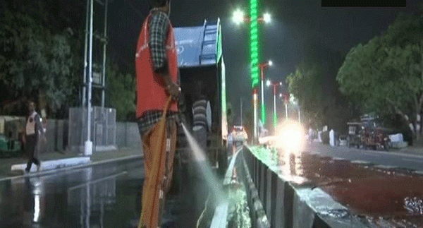 ರಸ್ತೆಯಲ್ಲಿ ಎಲ್ಲಿಯೂ ಕಸ ಕಡ್ಡಿ ಕಾಣದಂತೆ ನೀರು ಸುರಿದು ಸ್ವಚ್ಛಗೊಳಿಸಲಾಗುತ್ತಿದೆ. ರಸ್ತೆಯುದ್ಧಕ್ಕೂ ತಳಿರುತೋರಣಗಳನ್ನು ಕಟ್ಟಲಾಗಿದ್ದು ಪ್ರಧಾನಿ ನರೇಂದ್ರ ಮೋದಿ ಹಾಗೂ ಅಮೆರಿಕಾದ ಅಧ್ಯಕ್ಷ ಡೊನಾಲ್ಡ್ ಟ್ರಂಪ್ ಪೋಸ್ಟರ್ಗಳು ರಾರಾಜಿಸುತ್ತಿವೆ.