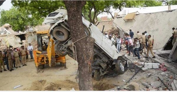 ಲಖನೌ: ಎಂಟು ಪೊಲೀಸರನ್ನು ಗುಂಡಿನ ದಾಳಿ ನಡೆಸಿ ಹತ್ಯೆ ಮಾಡಿದ್ದ ಗ್ಯಾಂಗ್ ಸ್ಟರ್ ವಿಕಾಸ್ ದುಬೆ ಮನೆ ಹಾಗೂ ಐಷಾರಾಮಿ ಕಾರುಗಳನ್ನು ಜಿಲ್ಲಾಡಳಿತ ಕೆಡವಿ ಹಾಕಿದೆ.