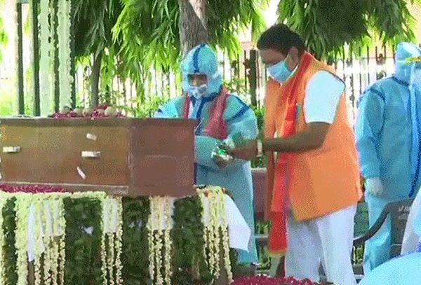ನವದೆಹಲಿ: ಕೊರೊನಾ ಮಾರ್ಗಸೂಚಿಯನ್ನುಅನುಸರಿಸಿ ಮಾಜಿ ರಾಷ್ಟ್ರಪತಿ ಪ್ರಣಬ್ ಮುಖರ್ಜಿ ಅವರನ್ನು ಮಂಗಳವಾರ (ಸೆಪ್ಟೆಂಬರ್ 1) ಮಧ್ಯಾಹ್ನ ಲೋಧಿ ರಸ್ತೆ ವಿದ್ಯುತ್ ಶವಾಗಾರದಲ್ಲಿ ಪೂರ್ಣ ಗೌರವಗಳೊಂದಿಗೆ ಅಂತ್ಯಕ್ರಿಯೆ ಮಾಡಲಾಯಿತು. ಅವರ ಮಗ ಅಭಿಜಿತ್ ಮುಖರ್ಜಿ ಅವರು ಲೋಧಿ ರಸ್ತೆ ಶವಾಗಾರದಲ್ಲಿ ತಮ್ಮ ಅಂತಿಮ ವಿಧಿಗಳನ್ನು ನೆರವೇರಿಸಿದರು.