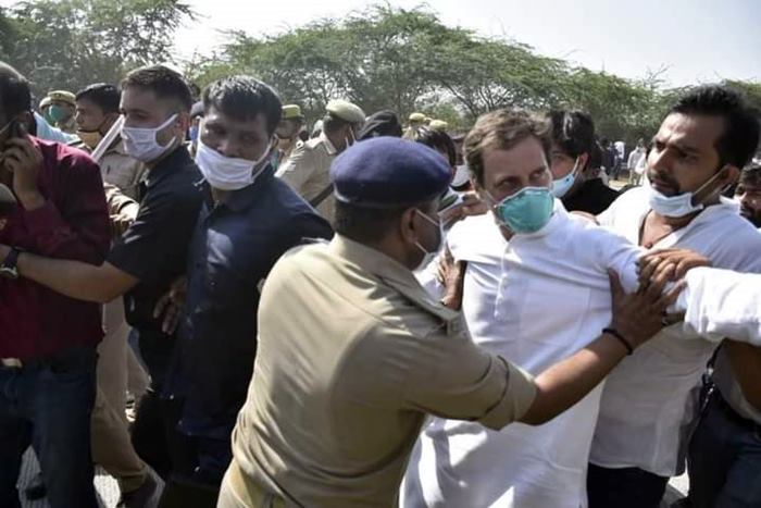 ಇದಕ್ಕೆ ಮುನ್ನ ಪಕ್ಷದ ಹಿರಿಯ ನಾಯಕರು ಸೇರಿದಂತೆ ಸುಮಾರು 200 ಕಾಂಗ್ರೆಸ್ ಕಾರ್ಯಕರ್ತರು, ಗ್ರೇಟರ್ ನೋಯ್ಡಾದ ಎಕ್ಸ್ಪ್ರೆಸ್ವೇಗಳಲ್ಲಿ ಪ್ಯಾರಿ ಚೌಕ್ ಬಳಿ ತಮ್ಮ ಬೆಂಗಾವಲು ವಾಹನ ನಿಲ್ಲಿಸಿ ಮೆರವಣಿಗೆ ಆರಂಭಿಸಿದ್ದರು. ರಾಹುಲ್ ಗಾಂಧಿ ಹಾಗೂ ಪ್ರಿಯಾಂಕಾ ಮತ್ತು ಸುಮಾರು 150 ಪಕ್ಷದ ಕಾರ್ಯಕರ್ತರನ್ನು ಪೊಲೀಸರು ಈ ಸಮಯ ಕ್ಷಿಪ್ರವಾಗಿ ಬಂಧಿಸಿ ನಂತರ ವೈಯಕ್ತಿಕ ಬಾಂಡ್ ನ ಮೇಲೆ ಬಿಡುಗಡೆ ಮಾಡಿದರು ಎನ್ನಲಾಗಿದೆ.