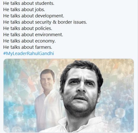 ನನ್ನ ನಾಯಕ ರಾಹುಲ್ ಗಾಂಧಿ ಎಂದು ಟ್ರೆಂಡ್ ಆಗುತ್ತಿರುವ ಈ ಟ್ವೀಟ್ಗಳಲ್ಲಿ ರಾಹುಲ್ ಗಾಂಧಿ ಅವರ ನಾಯಕತ್ವ ಗುಣದ ಗುಣಗಾನ ಮಾಡಲಾಗುತ್ತಿದೆ. ರಾಹುಲ್ ಗಾಂಧಿ ಎಂದಿಗೂ ರಾಜಕೀಯ ಜೀವನದಲ್ಲಿ ಸುಳ್ಳು ಹೇಳಿಲ್ಲ, ಅವರು ಅಭಿವೃದ್ಧಿ ಪರ ಎಂದು ಅಭಿಮಾನಿಗಳು ವಾದಿಸುತ್ತಿದ್ದಾರೆ. ಆರ್ಎಸ್ಎಸ್ ಹಾಗೂ ಬಿಜೆಪಿ ವಿರುದ್ಧ ದನಿ ಎತ್ತಬಲ್ಲ ಏಕೈಕ ನಾಯಕ ಎಂತಲೂ ಬಿಂಬಿಸಲಾಗುತ್ತಿದೆ.