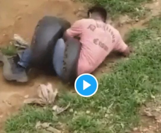 ವೈರಲ್ ವಿಡಿಯೋದಲ್ಲಿ ವ್ಯಕ್ತಿಯೊಬ್ಬ ತನ್ನ ಕಾಲುಗಳನ್ನು ಸುತ್ತಿಕೊಂಡು ಹಾವುವೊಂದು ಪ್ರಾಣಕ್ಕೆ ಕುತ್ತು ಬಂದ ಸ್ಥಿತಿಯಲ್ಲಿ ಪತ್ತೆಯಾಗಿದೆ. ಈ ವೇಳೆ ಸ್ಥಳಕ್ಕೆ ಬಂದ ಜನರು, ಪ್ರಾಣ ರಕ್ಷಣೆಗಾಗಿ ಹರಸಾಹಸ ಮಾಡಿದರು. ಹಾವಿನಿಂದ ವ್ಯಕ್ತಿಯನ್ನು ಬಿಡಿಸಲು ಪ್ರಯತ್ನಿಸಲಾಯಿತು ಆದರೆ ವಿಡಿಯೋ ಕಟ್ ಆದ ನಂತರ ಅಂತಿಮ ಫಲಿತಾಂಶ ತಿಳಿದುಬಂದಿಲ್ಲ.