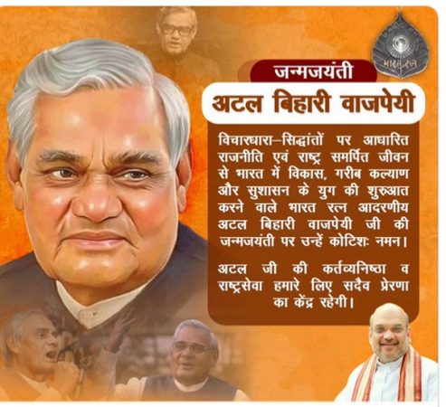 ಅಮಿತ್ ಶಾ ಟ್ವೀಟ್ ಮಾಡಿ, ತಮ್ಮ ವಿಚಾರಧಾರೆ ಮತ್ತು ಸಿದ್ಧಾಂತ ಆಧಾರಿತ ಆಡಳಿತದ ಮೂಲಕ ರಾಷ್ಟ್ರಕ್ಕಾಗಿ ತಮ್ಮ ಜೀವನವನ್ನೇ ಸಮರ್ಪಿಸಿ ಭಾರತದ ವಿಕಾಸ, ಬಡವರ ಕಲ್ಯಾಣ ಮತ್ತು ಉತ್ತಮ ಆಡಳಿತದ ಯುಗವನ್ನು ಪ್ರಾರಂಭಿಸಿದರು. ಅವರ ಜನ್ಮದಿನದಂದು ಅವರಿಗೆ ಗೌರವ ಅರ್ಪಿಸುತ್ತೇನೆ. ಅಟಲ್ ಜಿ ಅವರ ಕರ್ತವ್ಯ ಮತ್ತು ರಾಷ್ಟ್ರೀಯ ಸೇವೆ ಯಾವಾಗಲೂ ನಮಗೆ ಸ್ಫೂರ್ತಿಯಾಗಿರುತ್ತದೆ ಎಂದು ಹೇಳಿದ್ದಾರೆ.
