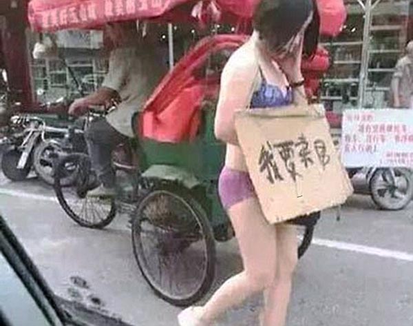 ಪತ್ನಿ 33 ವರ್ಷದ ವಾಂಗ್ ನೀ ಗಂಡು ಮಗುವನ್ನು ಹೇರಲಿಲ್ಲ ಎಂದು ಕೋಪಗೊಂಡಿದ್ದ 37 ವರ್ಷದ ಝಾಂಗ್ ಕುಡಿದ ಮತ್ತಿನಲ್ಲಿ ಪತ್ನಿ ಕೈಯಲ್ಲಿ ‘ಐ ವಾಂಟ್ ಟು ಸೆಲ್ ಮೈ ಬಾಡಿ’ ಎಂಬ ಬೋರ್ಡ್ ಹಿಡಿಸಿ ನಗರದ ಬೀದಿ ಬೀದಿಯಲ್ಲಿ ಸುತ್ತಿಸಿದ್ದಾನೆ. ಅದು ಅಲ್ಲದೆ ಅರೆಬೆತ್ತಲೆಯಲ್ಲಿ ಹೆಂಡತಿ ಬೋರ್ಡ್ ಹಿಡಿದು ನಡೆದುಹೋಗುತ್ತಿದ್ದರೆ ಹಿಂದಿನಿಂದ ಕಾರಿನಲ್ಲಿ ಹಿಂಬಾಲಿಸಿದ್ಧಾನೆ.