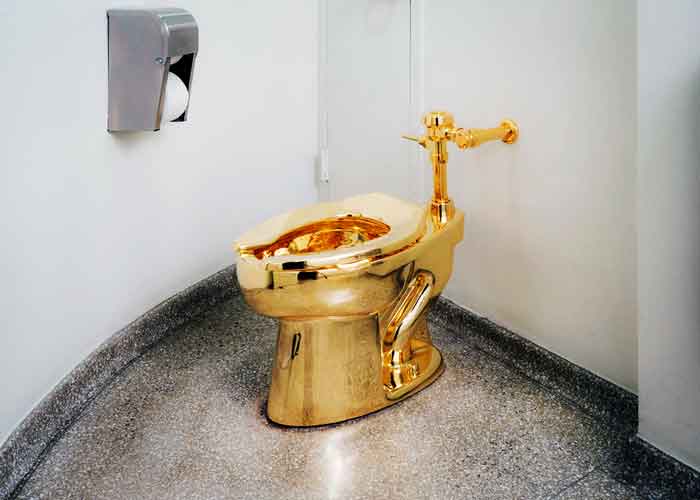 ಇಲ್ಲಿನ ಸೊಲೊಮನ್ ಆರ್ ಗುಗ್ಗೆನ್ಹೀಮ್ ವಸ್ತುಸಂಗ್ರಹಾಲಯದಲ್ಲಿ ಇಟಲಿಯ ಕಲಾವಿದ ಮುರಿಜಿಯೊ ಕೆಟ್ಟೆಲನ್ ‘ಅಮೆರಿಕ’ ಹೆಸರಿನ ಕಲಾ ಪ್ರದರ್ಶನ ಏರ್ಪಡಿಸಿದ್ದಾರೆ.ಪ್ರದರ್ಶನದ ಅಂಗವಾಗಿ ಅವರು ಕಟ್ಟಡದ ನಾಲ್ಕನೇ ಮಹಡಿಯ ಶೌಚಾಲಯದಲ್ಲಿರುವ ಹಳೆ ಕಮೊಡನ್ನು ಬದಲಿಸಿ ಅಲ್ಲಿ 18 ಕ್ಯಾರೆಟ್ ಚಿನ್ನದ ಕಮೊಡ್ ಇಟ್ಟಿದ್ದಾರೆ.