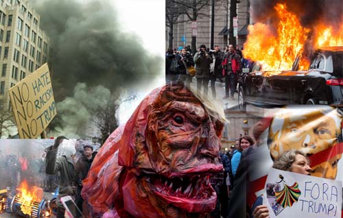ಟ್ರಂಪ್ ಅವರು ಶುಕ್ರವಾರ ಅಧಿಕಾರಿ ಸ್ವೀಕರಿಸುತ್ತಿರುವುದನ್ನು ಖಂಡಿಸಿ ರಾಜಧಾನಿಯಲ್ಲಿ ರಸ್ತೆಗಿಳಿದ ಜನರು ಪ್ರತಿಭಟನೆ ನಡೆಸಿ, ಟ್ರಂಪ್ ವಿರುದ್ಧ ಘೋಷಣೆ ಕೂಗಿ, ಫಲಕಗಳನ್ನು ಪ್ರದರ್ಶಿಸಿದ್ದಾರೆ.