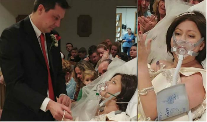 ವಾಷಿಂಗ್ಟನ್: ಕ್ಯಾನ್ಸರ್ ಪೀಡಿತ ಮಹಿಳೆಯೊಬ್ಬರು ಆಸ್ಪತ್ರೆಯ ಬೆಡ್ ಮೇಲೆಯೇ ಮದುವೆಯಾಗಿ, ನಂತರ 18 ಗಂಟೆಯ ಬಳಿಕ ಸಾವನ್ನಪ್ಪಿರುವ ಮನಕಲಕುವ ಘಟನೆ ಡಿಸೆಂಬರ್ 21 ರಂದು ಅಮೆರಿಕದ ಹಾರ್ಟ್ ಫೋರ್ಡ್ ನಗರದ ಫ್ರಾನ್ಸಿಸ್ ಆಸ್ಪತ್ರೆಯಲ್ಲಿ ನಡೆದಿದೆ.