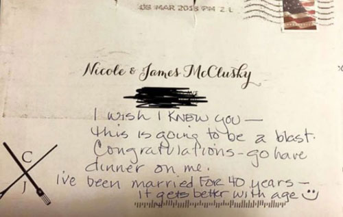 ಮದುವೆಯ ಗಡಿಬಿಡಿಯಲ್ಲಿರುವ ವಧುವೊಬ್ಬಳಿಗೆ ತನಗೆ ಯಾರೆಂದೇ ಗೊತ್ತಿರದ ವ್ಯಕ್ತಿಯೊಬ್ಬರು ಶುಭ ಕೋರಿ ಉಡುಗೊರೆ ನೀಡಿದರೆ ಹೇಗಿರುತ್ತದೆ? ಈ ರೀತಿಯ ಘಟನೆಯೊಂದು ಅಮೆರಿಕದಲ್ಲಿ ನಡೆದಿದೆ. ಕಾಸಂದ್ರ ವಾರೆನ್ ಎಂಬ ಮಹಿಳೆಗೆ ಆಕೆಯದ್ದೇ ಮದುವೆ ಆಮಂತ್ರಣ ಪತ್ರ ಅಂಚೆ ಮೂಲಕ ಬಂದಿತು. ಆಕೆ ವಿಳಾಸ ತಪ್ಪಾಗಿರಬಹುದು. ಆದ್ದರಿಂದ ವಾಪಸ್ಸು ಬಂದಿದೆ ಎಂದು ಗ್ರಹಿಸಿ ಆ ಆಮಂತ್ರಣವನ್ನು ತೆಗೆದು ನೋಡದೇ ಸುಮ್ಮನಾದಳು. ಕೆಲ ದಿನಗಳ ಬಳಿಕ ಆ ಕರೆಯೋಲೆಯನ್ನು ಆಕೆಯ ಭಾವಿ ಪತಿ ತೆರೆದು ನೋಡಿದಾಗ ಇಬ್ಬರಿಗೂ ಆಶ್ಚರ್ಯ ಕಾದಿತ್ತು. ಆಮಂತ್ರಣದಲ್ಲಿ ಪುಟ್ಟದಾದ ಟಿಪ್ಪಣಿ ಇತ್ತು. ಅದರಲ್ಲಿ “ನೀನು ನನಗೆ ಪರಿಚಿತಳಿರಬೇಕಿತ್ತು. ನಾನು ನಿನ್ನ ಮದುವೆಗೆ ಬಂದು ಮಜಾ ಮಾಡುತ್ತಿದ್ದೆ. ನಿನಗೆ ಅಭಿನಂದನೆಗಳು. ನನಗೆ ಮದುವೆಯಾಗಿ 40 ವರ್ಷಗಳಾಗಿವೆ. ವಯಸ್ಸು ಕಳೆದಂತೆ ದಾಂಪತ್ಯವೂ ಕಳೆಗಟ್ಟಿದೆ’ ಎಂದು ಬರೆಯಲಾಗಿತ್ತು. ಜೊತೆಗೆ 20 ಡಾಲರ್ ನೋಟನ್ನು ಇರಿಸಲಾಗಿತ್ತು. ಆಗಲೇ ಕಾಸಂದ್ರಗೆ ತಿಳಿದದ್ದು, ಆಕೆ ತನ್ನ ಚಿಕ್ಕಮ್ಮನಿಗೆ ಕಳಿಸಲು ಬರೆದ ವಿಳಾಸ ತಪ್ಪಾಗಿ, ಅಪರಿಚಿತನಿಗೆ ತಲುಪಿದೆ ಎಂದು. ಕೊನೆಗೆ ಆಕೆ ಆ ತಪ್ಪಾದ ವಿಳಾಸಕ್ಕೆ ಪತ್ರ ಬರೆದು ಧನ್ಯವಾದ ತಿಳಿಸಿದಳಂತೆ.