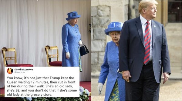 ಸಾಮಾನ್ಯವಾಗಿ ಬ್ರಿಟನ್ ರಾಣಿಯನ್ನು ಭೇಟಿ ಮಾಡಬೇಕಾದರೆ ನಿಗದಿತ ಪ್ರದೇಶಕ್ಕೆ ರಾಣಿಗಿಂತಲೂ ಮುಂಚಿತವಾಗಿ ಆಗಮಿಸಬೇಕಾಗುತ್ತದೆ, ಆದರೆ ಟ್ರಂಪ್ ಬ್ರಿಟನ್ ರಾಣಿಯನ್ನೇ ತಮಗಾಗಿ ಕಾಯಿಸಿದ್ದಾರೆ. ಇಷ್ಟೇ ಅಲ್ಲದೇ ಸ್ವಾಗತ ಸಮಾರಂಭದಲ್ಲಿ ರಾಣಿಯನ್ನು ಬಿಟ್ಟು ತಾವೇ ಮುಂದೆ ನಡೆದು ಹೋಗಿ ಶಿಷ್ಟಾಚಾರ ಉಲ್ಲಂಘನೆ ಮಾಡಿದ್ದಾರೆ.