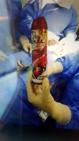 40 ವರ್ಷದ ವ್ಯಕ್ತಿ ಸ್ಯಾಂಟೋ ಡೊಮಿಂಗೋದಲ್ಲಿನ ಫ್ರಾನ್ಸಿಸ್ಕೋ ಮೆಸ್ಕೋಸಾ ಪುಲ್ಲೊ ಆಸ್ಪತ್ರೆಗೆ ದಾಖಲಾಗಿದ್ದು, ವೈದ್ಯರು ತುರ್ತು ಶಸ್ತ್ರಚಿಕಿತ್ಸೆ ಮಾಡುವ ಮೂಲಕ ಆತನ ಪೃಷ್ಠದ ಒಳಗಡೆ ಸಿಲುಕಿಕೊಂಡಿದ್ದ ಏರ್ಫ್ರೆಶ್ನರ್ ಬಾಟಲಿಯನ್ನು ಹೊರ ತೆಗೆದಿದ್ದಾರೆ.