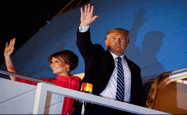 ಮಂಗಳವಾರ ರಾತ್ರಿ 10 ಗಂಟೆಗೆ ಅಮೆರಿಕದ ಅಧ್ಯಕ್ಷ ಡೊನಾಲ್ಡ್ ಟ್ರಂಪ್ ಎರಡು ದಿನಗಳ ಭಾರತ ಪ್ರವಾಸದ ನಂತರ ಅಮೆರಿಕಕ್ಕೆ ತೆರಳಿದರು. ಇದಕ್ಕೂ ಮೊದಲು ದೆಹಲಿಯಲ್ಲಿ ಅವರು ಪ್ರಧಾನಿ ನರೇಂದ್ರ ಮೋದಿ ಅವರೊಂದಿಗೆ ಜಂಟಿ ಪತ್ರಿಕಾಗೋಷ್ಠಿ ನಡೆಸಿದರು. ಟ್ರಂಪ್ ತಮ್ಮ ಪ್ರವಾಸದ ಸಮಯದಲ್ಲಿ ಅಹಮದಾಬಾದ್ನ ಸಬರಮತಿ ಆಶ್ರಮ ಮತ್ತು ಆಗ್ರಾದ ತಾಜ್ಮಹಲ್ಗೆ ಭೇಟಿ ನೀಡಿದರು.