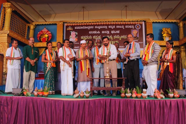 ಉಡುಪಿ ಜಿಲ್ಲಾ ಕನ್ನಡ ಸಾಹಿತ್ಯ ಪರಿಷತ್ ಅಧ್ಯಕ್ಷ ನೀಲಾವರ ಸುರೇಂದ್ರ ಅಡಿಗ ಆಶಯನುಡಿಗಳನ್ನಾಡುತ್ತಾ ಕನ್ನಡದ ಬಗ್ಗೆ ಮಾತನಾಡುವ ಮೊದಲು ನಮ್ಮ ಮಕ್ಕಳನ್ನು ಕನ್ನಡದ ಮಾಧ್ಯಮಕ್ಕೆ ಸೇರಿಸಬೇಕು. ಆಂಗ್ಲ ಮಾಧ್ಯಮದ ಶಾಲೆಗಳಿಗೆ ಮಕ್ಕಳನ್ನು ಸೇರಿಸುವವರಿಗೆ ಕನ್ನಡ ಬಗ್ಗೆ ಮಾತನಾಡುವ ನೈತಿಕತೆಯನ್ನು ಹೊಂದಿಲ್ಲ ಎಂದರು. ಕರ್ನಾಟಕದಲ್ಲಿ ಏಕರೂಪದ ಶಿಕ್ಷಣ ಹಾಗೂ ರಾಜ್ಯ ಭಾಷೆಯಲ್ಲಿ ಶಿಕ್ಷಣ ಸೀಗುವಂತಾಗಬೇಕು. ಕನ್ನಡ ಮಾಧ್ಯಮ ಮೇಲೆ ವ್ಯವಸ್ಥಿತವಾಗಿ ಅಪಪ್ರಚಾರ ಮಾಡುವವರ ಬಗ್ಗೆ ನನಗೆ ಕೋಪವಿದೆ ಎಂದು ತಮ್ಮ ಸಾತ್ವಿಕ ಸಿಟ್ಟನ್ನು ಹೊರಗೆಡವಿದರು.