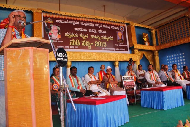 ಅವರು ಉಡುಪಿ ಜಿಲ್ಲೆಯ 10ನೇ ಕನ್ನಡ ಸಾಹಿತ್ಯ ಸಮ್ಮೇಳನ ನುಡಿಹಬ್ಬ-2015ರ ಸರ್ವಾಧ್ಯಕ್ಷತೆಯನ್ನು ವಹಿಸಿ ಮಾತನಾಡುತ್ತಾ ಸೂತಕದ ಮನೆಯೊಳಗೆ ಸಂಭ್ರಮಿಸುವ ಪರಿ ನಮ್ಮದಾಗಿದೆ. ಕನ್ನಡ ಕಲಿಯುವವರೇ ಇಲ್ಲದ ಮೇಲೆ ಅವರು ಉತ್ತಮ ಕನ್ನಡದ ಸಾಹಿತಿಗಳು ಎಲ್ಲಿ ಹುಟ್ಟುತ್ತಾರೆ, ಕನ್ನಡ ಮಾಧ್ಯಮದವರಿಗೆ ಉದ್ಯೋಗದಲ್ಲಿ 50 ಪ್ರತಿಶತ ಮೀಸಲಾತಿಯನ್ನು ನೀಡುವುದು ಹೇಗೆ ಎಂದು ಅವರು ವಿಷಾದಿಸಿದರು.