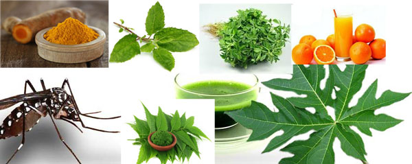 ಪಪ್ಪಾಯ ಎಲೆಗಳು: ಪಪ್ಪಾಯ ಎಲೆಗಳನ್ನು ಜಜ್ಜಿ ಒಂದು ಶುದ್ಧವಾದ ಬಟ್ಟೆಯಿಂದ ಹೀಮಡಿ ತೆಗೆದು ಅದರ ರಸವನ್ನು ಸೇವಿಸುವುದರಿಂದ ಡೆಂಗ್ಯೂ ಜ್ವರದ ಪ್ರಮಾಣವನ್ನುತಗ್ಗಿಸಬಹುದು.