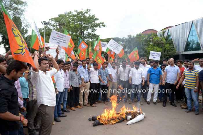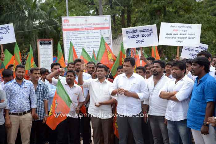 ಪ್ರತಿಭಟನೆ ಸಂದರ್ಭ ರಾಹುಲ್ಗಾಂಧಿ ವಿರುದ್ಧ ಘೋಷಣೆ ಕೂಗಿದ ಯುವ ಮೋರ್ಚಾ ಕಾರ್ಯಕರ್ತರು ಬಳಿಕ ರಾಹುಲ್ ಗಾಂಧಿಯ ಪ್ರತಿಕೃತಿಗೆ ಬೆಂಕಿ ಹಚ್ಚುವ ಮೂಲಕ ತಮ್ಮ ಆಕ್ರೋಷವನ್ನು ವ್ಯಕ್ತಪಡಿಸಿದರು.