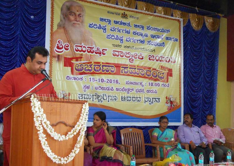 ಅವರು ಶನಿವಾರ , ಜಿಲ್ಲಾ ಆಡಳಿತ , ಜಿಲ್ಲಾ ಪಂಚಾಯತ್ ಉಡುಪಿ, ಪರಿಶಿಷ್ಟ ವರ್ಗಗಳ ಕಲ್ಯಾಣ ಇಲಾಖೆ ಹಾಗೂ ಪರಿಶಿಷ್ಟ ವರ್ಗಗಳ ಸಂಘಟನೆಯ ಸಹಯೋಗದಲ್ಲಿ ಆದಿಉಡುಪಿಯ ಅಂಬೇಡ್ಕರ್ ಸಭಾ ಭವನದಲ್ಲಿ ಆಯೋಜಿಸಿದ್ದ ಶ್ರೀ ಮಹರ್ಷಿ ವಾಲ್ಮೀಕಿ ಜಯಂತಿ ಆಚರಣಾ ಸಮಾರಂಭವನ್ನು ಉದ್ಘಾಟಿಸಿ ಮಾತನಾಡಿದರು.