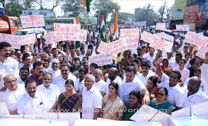 ಮಂಗಳೂರು, ಜನವರಿ.7: ನೋಟು ಅಪಮೌಲ್ಯಗೊಳಿಸಿರುವುದನ್ನು ವಿರೋಧಿಸಿ ದ.ಕ. ಜಿಲ್ಲಾ ಕಾಂಗ್ರೆಸ್ ವತಿಯಿಂದ ಶನಿವಾರ ದ.ಕ. ಜಿಲ್ಲಾಧಿಕಾರಿ ಕಚೇರಿ ಎದುರು ಪ್ರತಿಭಟನೆಯನ್ನು ಹಮ್ಮಿಕೊಳ್ಳಲಾಗಿತ್ತು.