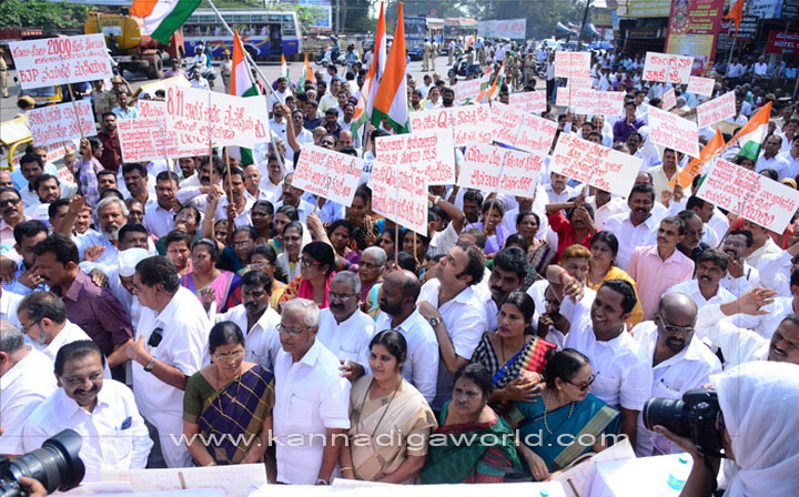 ದ.ಕ. ಜಿಲ್ಲಾ ಕಾಂಗ್ರೆಸ್ ಅಧ್ಯಕ್ಷ ಹಾಗೂ ಜಿಲ್ಲಾ ಉಸ್ತುವಾರಿ ಸಚಿವ ರಮಾನಾಥ ರೈ ಅವರ ನೇತೃತ್ವದಲ್ಲಿ ನಡೆದ ಪ್ರತಿಭಟನೆ ಯನ್ನುದ್ದೇಶಿಸಿ ಎಐಸಿಸಿ ವೀಕ್ಷಕ ವಿಷ್ಣುಪ್ರಸಾದ್ ಮಾತನಾಡಿ, ಪ್ರಧಾನಿ ಮೋದಿಯವರು ದೇಶದ ಜನತೆ, ಮಿತ್ರಪಕ್ಷಗಳು, ಪ್ರತಿಪಕ್ಷಗಳು ಮತ್ತು ಆರ್ಬಿಐ ಗವರ್ನರ್ ಜತೆ ಯಾವುದೇ ಸಮಾಲೋಚನೆ ನಡೆಸದೇ ಏಕಾಏಕಿ ನೋಟು ಅಮಾನ್ಯಗೊಳಿಸಿರುವ ಕ್ರಮ ಅಸಾಂವಿಧಾನಿಕ. ಮೋದಿ ನೇತೃತ್ವದ ಕೇಂದ್ರ ಸರಕಾರವು ನೋಟು ಅಪವೌಲ್ಯಗೊಳಿಸುರುವುದನ್ನು ಖಂಡಿಸುವುದಾಗಿ ತಿಳಿಸಿದರು.