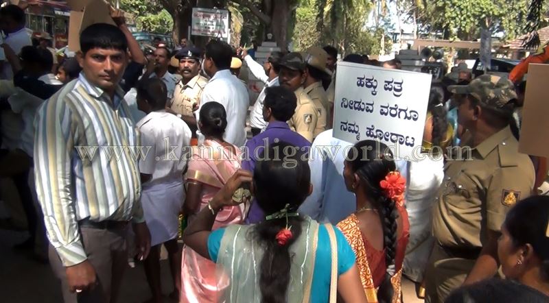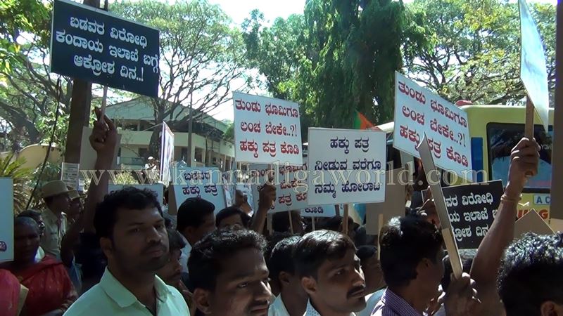ಹಕ್ಕು ಪತ್ರ ನೀಡಲು ಸರಕಾರ ಹಾಗೂ ಅಧಿಕಾರಿಗಳು ತೋರುತ್ತಿರುವ ವಿಳಂಬ ನೀತಿ ಖಂಡಿಸಿ ವಿಧಾನ ಪರಿಷತ್ ಸದಸ್ಯ ಕೋಟ ಶ್ರೀನಿವಾಸ ಪೂಜಾರಿ ನೇತ್ರತ್ವದಲ್ಲಿ ಕುಂದಾಪುರದಲ್ಲಿ ಇಂದು ಬ್ರಹತ್ ಪ್ರತಿಭಟನಾ ಸಭೆ ನಡೆಯಿತು. ಶಾಸ್ತ್ರೀ ವ್ರತ್ತದಲ್ಲಿ ನಡೆದ ಸಭೆಯನ್ನುದ್ದೇಶಿಸಿ ಮಾತನಾಡಿದ ಶ್ರೀನಿವಾಸ ಪೂಜಾರಿಯವರು ಕುಂದಾಪುರ ತಾಲೂಕಿನಲ್ಲಿ 7 ಸಾವಿರಕ್ಕೂ ಮಿಕ್ಕಿ 94ಸಿ ಮತ್ತು ಸಿಸಿ ಅರ್ಜಿದಾರರು ಹಕ್ಕು ಪತ್ರಕ್ಕಾಗಿ ಕಾಯುತ್ತಿದ್ದು ಕೆಲವು ಗ್ರಾಮ ಪಂಚಾಯತ್ಗಳಲ್ಲಿ ಒಂದೂ ಹಕ್ಕು ಪತ್ರವನ್ನು ವಿತರಿಸಿಲ್ಲ. ತಾಲೂಕು ಕಛೇರಿಯಲ್ಲಿ ಹಕ್ಕು ಪತ್ರಗಳ ವಿತರಣೆಯ ಕೆಲಸಗಳೇ ನಡೆಯದಂತಹ ಪರಿಸ್ಥಿತಿ ನಿರ್ಮಾಣವಾಗಿದೆ. ಬಡವರ ಮನೆಯ ನಿವೇಶನಗಳ ಸರ್ವೆ ಹಾಗೂ ತನಿಖೆ ಕಾರ್ಯವೂ ನಡೆಯುತ್ತಿಲ್ಲ. ಕಿವುಡು ಹಾಗೂ ಕುರುಡು ಸರಕಾರ ಹಾಗೂ ಸ್ಥಳೀಯ ಆಡಳಿತ ಕಛೇರಿಗಳು ಜನರನ್ನು ದಿಕ್ಕು ತಪ್ಪಿಸುವ ಕಾರ್ಯ ಮಾಡುತ್ತಿದೆ. ಓರ್ವ ಶಾಸಕ ಹಾಗೂ ಮಾಜಿ ಮಂತ್ರಿಯ ಸ್ಥಾನದಲ್ಲಿ ಕುಂದಾಪುರ ಉಪವಿಭಾಗಾಧಿಕಾರಿ ಹಾಗೂ ತಹಶಿಲ್ದಾರ್ ಕಛೇರಿಯೆದುರು ಹಕ್ಕುಪತ್ರಕ್ಕಾಗಿ ಹೋರಾಟ ನಡೆಸಿ ಮನವಿ ನೀಡಿ ತಿಂಗಳುಗಳದರೂ ಕೂಡ ನಿಷ್ಕರುಣಿ, ಜವಬ್ದಾರಿ ಮರೆತ, ಹೊಣೆಗೇಡಿತನದ ಅಧಿಕಾರಿಗಳಿಂದಾಗಿ, ಸರಕಾರದ ನಿರ್ಲಕ್ಷ್ಯ ಹಾಗೂ ಜೀವವಿಲ್ಲದ ಜಿಲ್ಲಾಡಳಿತದ ವಿರುದ್ಧ ನಮ್ಮ ಜನಾಕ್ರೋಷ ಇದಾಗಿದೆ. ಬಡವರ ಪರವಾಗಿ ಕೆಲಸ ಮಾಡಲು ಸಾಧ್ಯವಾದರೇ ಮಾಡಿ ಇಲ್ಲವಾದರೇ ಜಿಲ್ಲೆಯನ್ನು ಜಿಲ್ಲಾಧಿಕಾರಿಗಳು ಬಿಟ್ಟುಹೋಗಿ ಎಂದು ಆಗ್ರಹಿಸಿದ ಕೋಟ ಶ್ರೀನಿವಾಸ ಪೂಜಾರಿಯವರು ಜಿಲ್ಲಾ ಉಅಸ್ತುವಾರಿ ಸಚಿವರು ಈ ಸಮಸ್ಯೆ ಬಗ್ಗೆ ಗಂಭೀರವಾಗಿ ಪರಿಗಣಿಸುತ್ತಿಲ್ಲ ಎಂದು ಆರೋಪಿಸಿದರು.