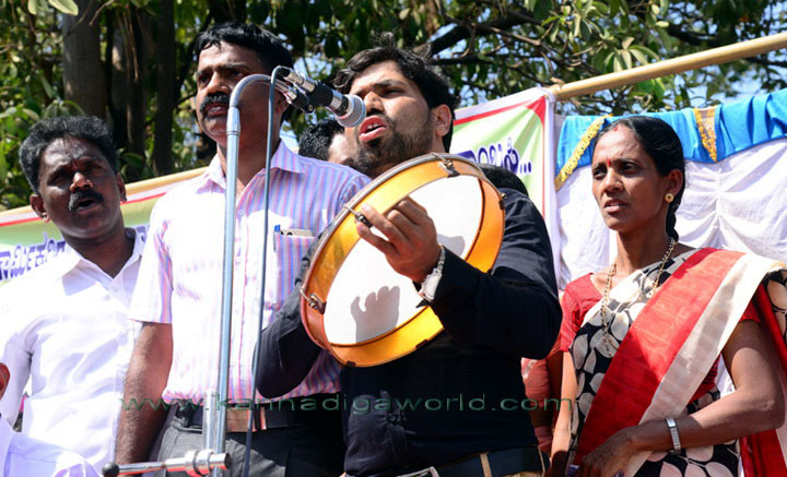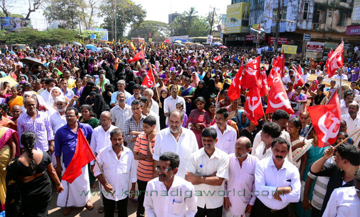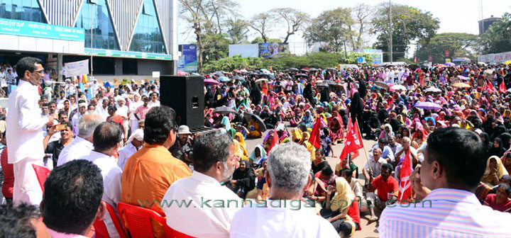 ಪ್ರತಿಭಟನ ಸಭೆಗೂ ಮೊದಲು ಸಾವಿರಾರು ಬೀಡಿ ಕಾರ್ಮಿಕರು ಪುರಭವನದಿಂದ ಜಿಲ್ಲಾಧಿಕಾರಿ ಕಚೇರಿಯವರೆಗೆ ಕಾಲ್ನಡಿಗೆ ಜಾಥದಲ್ಲಿ ತೆರಳಿದರು.