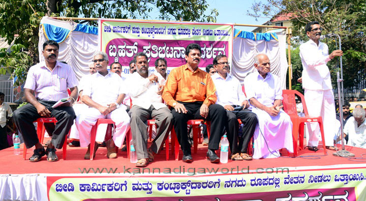 ಕಾಂಟ್ರಾಕ್ಟರ್ ಹೋರಾಟ ಸಮಿತಿಯ ಪ್ರಧಾನ ಕಾರ್ಯದರ್ಶಿ ಮಹಮ್ಮದ್ ರಫಿ ಮಾತನಾಡಿ, ಪ್ರಧಾನಿ ನರೇಂದ್ರ ಮೋದಿ ನ.8ರಿಂದ ಅನ್ವಯವಾಗುವಂತೆ 500 ಮತ್ತು 1,000 ರೂ. ಮುಖಬೆಲೆಯ ನೋಟುಗಳನ್ನು ಅಮಾನ್ಯಗೊಳಿಸಿದ ಬಳಿಕ ಬೀಡಿ ಕಾರ್ಮಿಕರು ಅತಂತ್ರಸ್ಥಿತಿಗೆ ತಲುಪಿದ್ದಾರೆ. ಬೀಡಿ ಕಾರ್ಮಿಕರಲ್ಲಿ ಶೇ.60ರಷ್ಟು ಮಂದಿ ಅನಕ್ಷರಸ್ಥರಾಗಿದ್ದಾರೆ. ಹೆಚ್ಚಿನವರಿಗೆ ಬ್ಯಾಂಕ್ ವ್ಯವಹಾರ ಮಾಡಿ ಗೊತ್ತಿಲ್ಲ. ನೋಟು ನಿಷೇಧಕ್ಕೆ ಮುನ್ನವೇ ಬೀಡಿ ಮಾಲಕರು ತಮ್ಮ ಆರ್ಥಿಕ ಸ್ಥಿತಿ ಸುಸ್ಥಿತಿಯಲ್ಲಿರುವಂತೆ ನೋಡಿಕೊಂಡಿದ್ದರೆ, ಬೀಡಿ ಕಾರ್ಮಿಕರು ಇನ್ನೂ ದಿನದೂಡಲು ಹರಸಾಹಸ ಪಡುತ್ತಿದ್ದಾರೆ ಎಂದು ಹೇಳಿದರು.