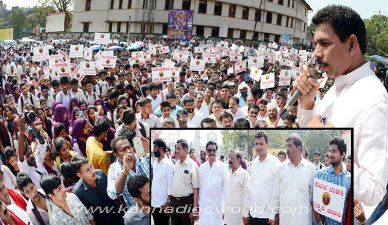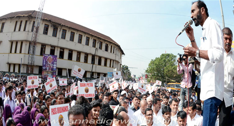 ಮಂಗಳೂರು, ಜನವರಿ.27: ಸಮಗ್ರ ತುಳುನಾಡಿನ ಸಾಂಪ್ರದಾಯಿಕ ಆಚರಣೆ, ತುಳುನಾಡಿನ ಸಂಸ್ಕೃತಿಯ ಪ್ರತೀಕವಾಗಿರುವ ಜಾನಪದ ಕ್ರೀಡೆ ಕಂಬಳ ನಿಷೇಧವನ್ನು ವಿರೋಧಿಸಿ ‘ಕಂಬಳ ಉಳಿಸಿ ಹೋರಾಟ ಸಮಿತಿ’ ನೇತೃತ್ವದಲ್ಲಿ ಶುಕ್ರವಾರ ಮಂಗಳೂರಿನಲ್ಲಿ ಬೃಹತ್ ಪ್ರತಿಭಟನೆ ನಡೆಯಿತು.