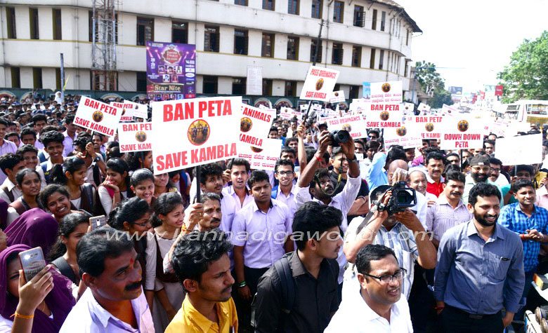 ಪ್ರತಿಭಟನ ಸಭೆಗೂ ಮೊದಲು ನಗರದ ಜ್ಯೋತಿ ಟಾಕೀಸ್ ಸಮೀಪದ ಅಂಬೇಡ್ಕರ್ ವೃತ್ತದಿಂದ ಹಂಪನಕಟ್ಟೆಯ ( ಹಿಂದಿನ ಸಿಗ್ನಲ್ ವೃತ್ತ) ಜಂಕ್ಸನ್ವರೆಗೆ ಕಂಬಳಾಭಿಮಾನಿಗಳು ಹಾಗೂ ವಿವಿಧ ಶಾಲಾ ಕಾಲೇಜುಗಳ ಸಾವಿರಾರು ವಿದ್ಯಾರ್ಥಿಗಳು ಕಾಲ್ನಡಿಗೆ ಮೂಲಕ ಆಗಮಿಸಿ ಹಂಪನಕಟ್ಟೆಯ ವೃತ್ತದಲ್ಲಿ ಮಾನವ ಸರಪಳಿ ನಡೆಸಿ ಕಂಬಳಕ್ಕೆ ಬೆಂಬಲ ಸೂಚಿಸಿದರು.