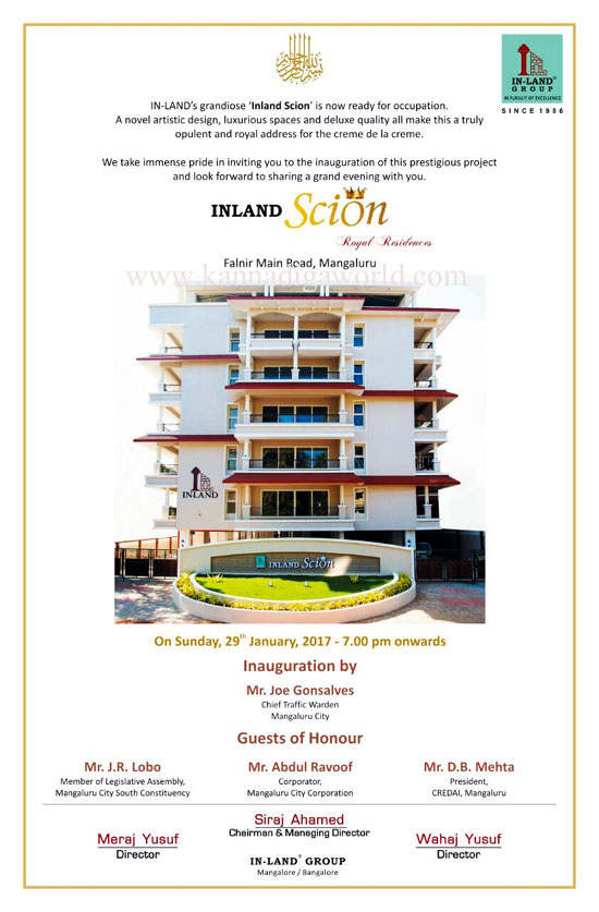 ಮಂಗಳೂರು ನಗರಕ್ಕೆ ಅತ್ಯಾಕರ್ಷಕ, ಆಧುನಿಕ ವಿನ್ಯಾಸದ ಸುಂದರ ಕಟ್ಟಡಗಳನ್ನು ಕಟ್ಟಿ ಮಂಗಳೂರು ಕೂಡ ಬೇರೆಬೇರೆ ಹೈಟೆಕ್ ಸಿಟಿಗಳಂತೆ ಸುಂದರವಾಗಿ ಕಾಣಲು ಇನ್ ಲ್ಯಾಂಡ್ ಸಂಸ್ಥೆ ಕೊಟ್ಟ ಕಾಣಿಕೆ ಅಪಾರ. ನಗರದ ಪ್ರಹತಿ ಹಾಗೂ ಮೆರುಗನ್ನು ಇಮ್ಮಡಿಗೊಳಿಸಿರುವ ಇನ್ಲ್ಯಾಂಡ್ ಸಂಸ್ಥೆಯ ಈ ಕೊಡುಗೆಯು ಮಂಗಳೂರು ಜನತೆಯು ಹೆಮ್ಮೆಪಡುವಂತಾಗಲು ಇನ್ಲ್ಯಾಂಡ್ ಸಂಸ್ಥೆಯ ಆಡಳಿತ ಮಂಡಳೀಯ ನಿರ್ದೇಶಕ ಸಿರಾಜ್ ಅಹಮ್ಮದ್ ರವರು ಕಾರಣಕರ್ತರು. ಅವರ ಮುಂದಾಲೋಚನೆ ಪ್ರಾಮಾಣಿಕ ಪ್ರಯತ್ನ ಮತ್ತು ಕಟ್ಟಡ ನಿರ್ಮಾಣದ ಗುಣಮಟ್ಟದಲ್ಲಿನ ಕಟ್ಟುನಿಟ್ಟಿನ ನಿಲುವು ಈ ಎಲ್ಲ ಯಶಸ್ಸಿಗೆ ಕಾರಣವಾಗಿದೆ.