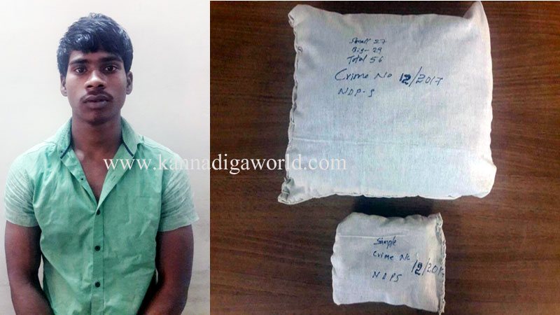 ಈತನಿಂದ 437 ಗ್ರಾಂ ಗಾಂಜಾ, 1 ಮೊಬೈಲ್ ಮತ್ತು 250 ರೂ. ಸಹಿತ ಒಟ್ಟು ವೌಲ್ಯ 10,925 ರೂ. ವೌಲ್ಯದ ಸೊತ್ತನ್ನು ಪೊಲೀಸರು ವಶಪಡಿಸಿಕೊಂಡಿದ್ದಾರೆ. ಈತನ ವಿರುದ್ಧ ಎನ್ಡಿಪಿಎಸ್ ಕಾಯ್ದೆಯಡಿ ಪ್ರಕರಣ ದಾಖಲಿಸಲಾಗಿದೆ.