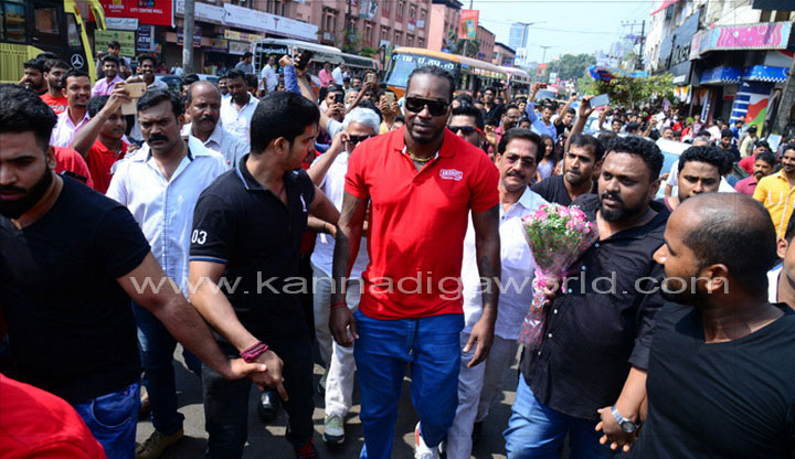 ವೆಸ್ಟ್ ಇಂಡಿಸ್‌ನ ಸ್ಟಾರ್ ಕ್ರಿಕೆಟರ್, ಸ್ಫೋಟಕ ಬ್ಯಾಟ್ಸ್‌ಮನ್ ಕ್ರಿಸ್ ಗೇಲ್‌ರಿಂದ ಮಂಗಳೂರಿನಲ್ಲಿ ರೋಡ್ ಶೋ…