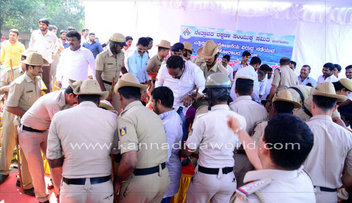 ನೇತ್ರಾವತಿ ರಕ್ಷಣಾ ಸಂಯುಕ್ತ ಸಮಿತಿಗೆ ಇಂದು ಅಪರಾಹ್ನ 2 ಗಂಟೆಯವರೆಗೆ ಮಾತ್ರ ಧರಣಿ ನಡೆಸಲು ಪೊಲೀಸ್ ಇಲಾಖೆ ಅನುಮತಿ ನೀಡಿತ್ತು ಎನ್ನಲಾಗಿದೆ. ಆದರೆ ಅ ಬಳಿಕವೂ ಧರಣಿ ನಿರತರು ಸ್ಥಳ ತೆರವುಗೊಳಿಸದ ಕಾರಣ ಸಂಸದ ನಳಿನ್ ಕುಮಾರ್ ಸಹಿತ ಉಪವಾಸ ನಿರತರಾಗಿದ್ದ ಹಲವರನ್ನು ಪೊಲೀಸರು ಬಂಧಿಸಿದ್ದಾರೆ ಎಂದು ಪೊಲೀಸ್ ಮೂಲಗಳಿಂದ ತಿಳಿದು ಬಂದಿದೆ.