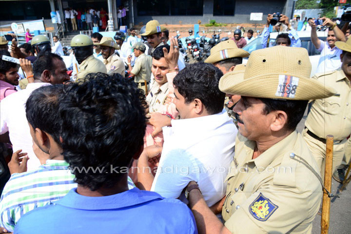 ಮಂಗಳೂರು,ಫೆಬ್ರವರಿ.10: ಎತ್ತಿನಹೊಳೆ ಯೋಜನೆ ವಿರುದ್ಧ ನೇತ್ರಾವತಿ ರಕ್ಷಣಾ ಸಂಯುಕ್ತ ಸಮಿತಿಯು ನಗರದ ಜಿಲ್ಲಾಧಿಕಾರಿ ಕಚೇರಿ ಮುಂಭಾಗ ಕೈಗೊಂಡಿದ್ದ ಆಮರಣಾಂತ ಉಪವಾಸ ಸತ್ಯಾಗ್ರಹಕ್ಕೆ ಪೊಲೀಸರು ಅಡ್ಡಿಪಡಿಸಿ, ಅನಿರ್ಧಿಷ್ಟಾವಧಿ ಉಪವಾಸ ನಿರತರಾಗಿದ್ದವರನ್ನು ಬಂಧಿಸಿದ ಘಟನೆ ಶುಕ್ರವಾರ ಮಂಗಳೂರಿನಲ್ಲಿ ನಡೆದಿದ್ದು, ಇದರಿಂದ ರೊಚ್ಚಿಗೆದ್ದ ಸಮಿತಿಯು ಅನಿರ್ಧಿಷ್ಟಾವಧಿ ದಕ್ಷಿಣ ಕನ್ನಡ ಜಿಲ್ಲಾ ಬಂದ್ಗೆ ಕರೆ ನೀಡಿದೆ.