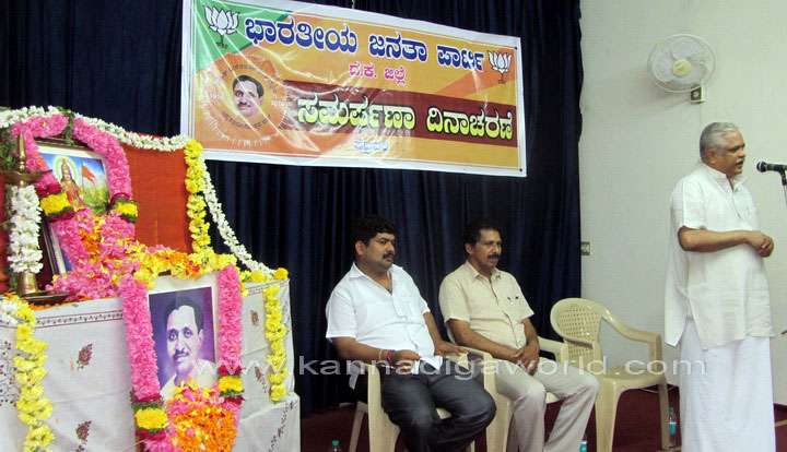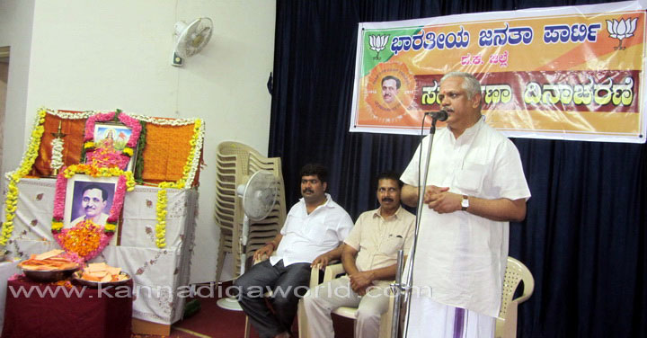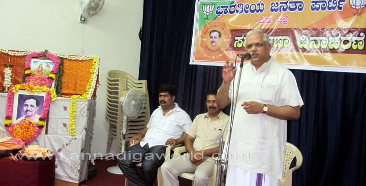 ಪಂಡಿತ್ ದೀನ್ ದಯಾಳ್ ಉಪಾದ್ಯಾಯರ ಜನ್ಮ ಶತಾಬ್ದಿ ವರ್ಷಾಚರಣೆ ಹಿನ್ನೆಲೆಯಲ್ಲಿ ದಕ್ಷಿಣ ಕನ್ನಡ ಜಿಲ್ಲಾ ಬಿಜೆಪಿ ವತಿಯಿಂದ ನಗರದ ಜಿಲ್ಲಾ ಕಚೇರಿಯಲ್ಲಿ ಇತ್ತೀಚಿಗೆ ನಡೆದ ಸಮರ್ಪಣಾ ದಿನ ಕಾರ್ಯಕ್ರಮದಲ್ಲಿ ದೀನ ದಯಾಳ್ರ ಭಾವಚಿತ್ರಕ್ಕೆ ಪುಷ್ಫ ನಮನ ಸಲ್ಲಿಸಿ ಅವರು ಮಾತನಾಡಿದರು.
