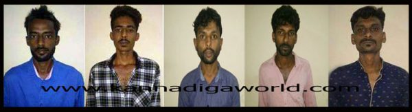 ಬಂಧಿತ ಆರೋಪಿಗಳನ್ನು ಪುತ್ತೂರು ದರ್ಬೆಯ ರವಿಕುಮಾರ್ ಯಾನೆ ಅಣ್ಣು (24), ಮಂಜೇಶ್ವರ ಗ್ರಾಮದ ಕುಂಜತ್ತೂರಿನ ಖಲೀಲ್ ಕೆ. ಯಾನೆ ಕಲ್ಲು (27), ಮಂಜೇಶ್ವರ ಕುಂಜತ್ತೂರಿನ ರಾಜೇಶ್ ಕೆ. (30), ಮಂಜೇಶ್ವರ ಗ್ರಾಮದ ಬಂಗ್ರಮಂಜೇಶ್ವರದ ಅಝೀಮ್ ಯಾನೆ ಮುಹಮ್ಮದ್ ಅಝೀಮ್ (23) ಮತ್ತು ಮಂಜೇಶ್ವರ ಗ್ರಾಮ ಕುಂಜತ್ತೂರಿನ ಜಾಬೀರ್ ಅಬ್ಬಾಸ್ ಯಾನೆ ಜಾಬೀರ್ ಎಂದು ಗುರುತಿಸಲಾಗಿದೆ.