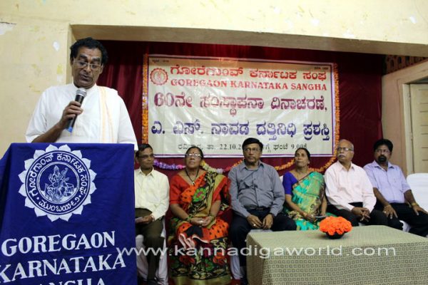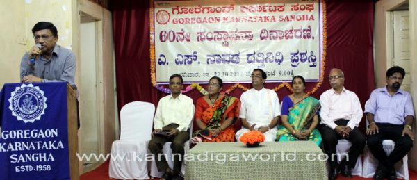 ಸಂಘದ 60 ನೇ ಸಂಸ್ಥಾಪನಾ ದಿನಾಚರಣೆ ಮತ್ತು ದತ್ತಿನಿಧಿ ಪ್ರಶಸ್ತಿ ಪ್ರಧಾನ ಕಾರ್ಯಕ್ರಮವು ಗೋರೆಗಾಂವ್ ಪೂರ್ವ ಕೇಶವ ಗೋರೆ ಸಭಾಗೃಹದಲ್ಲಿ ಜರಗಿದ್ದು ಸಮಾರಂಭದ ಅಧ್ಯಕ್ಷತೆಯನ್ನು ವಹಿಸಿ ಅವರು ಮಾತನಾಡುತ್ತಿದ್ದರು.