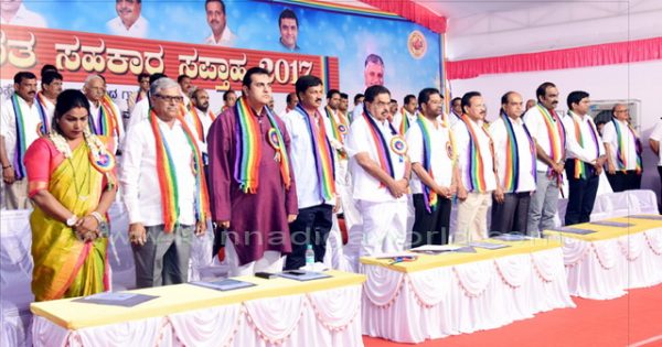 ಮಂಗಳೂರು, ನವೆಂಬರ್.15: 64ನೇ ಅಖಿಲ ಭಾರತ ಸಹಕಾರ ಸಪ್ತಾಹ-2017 ಅಂಗವಾಗಿ ಬುಧವಾರ ನಗರದ ಕೇಂದ್ರ ಮೈದಾನದ ಫುಟ್ಬಾಲ್ ಗ್ರೌಂಡ್ನಲ್ಲಿ ರಾಜ್ಯ ಮಟ್ಟದ ಸಹಕಾರ ಸಪ್ತಾಹ ಕಾರ್ಯಕ್ರಮ ನಡೆಯಿತು.
