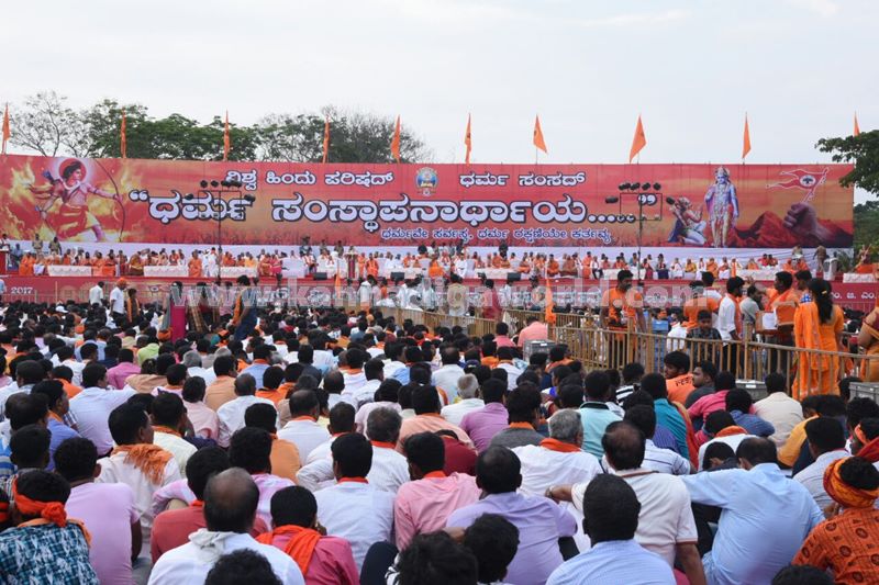 ಉಡುಪಿಯ ರಾಯಲ್ ಗಾರ್ಡನಲ್ಲಿ ಹಮ್ಮಿಕೊಂಡಿದ್ದ ವಿಶ್ವಹಿಂದೂಪರಿಷತ್ ನ ಮೂರು ದಿನಗಳ ಧರ್ಮ ಸಂಸದ್ ಗೆ ತೆರೆ ಬಿದ್ದಿದೆ. ಮೂರು ದಿನಗಳ ಕಾಲ ಪ್ರಮುಖ ವಿಚಾರಗಳ ಬಗ್ಗೆ ದೇಶದ ವಿವಿಧ ಭಾಗಗಳಿಂದ ಆಗಮಿಸಿದ್ದ ಸಾಧು ಸಂತರು ತಮ್ಮ ವಿಚಾರವನ್ನು ಮಂಡಿಸಿದರು. ಮೊದಲನೇ ದಿನ ರಾಮಮಂದಿರದ ಬಗ್ಗೆ ಚರ್ಚೆ ಆದ್ರೆ, ಎರಡನೇ ದಿನ ಅಶ್ಪ್ರಶ್ಯತೆ, ಮತಾಂತರದ ಬಗ್ಗೆ ಚರ್ಚೆ ನಡೆದಿತ್ತು. ಇಂದು ಮೂರನೇ ದಿನ ಗೋ ಹತ್ಯೆ ಹಾಗೂ ಗೋ ಸಂರಕ್ಷಣೆಯ ಬಗ್ಗೆ ಸಾಧು ಸಂತರು ತಮ್ಮ ವಾದ ಮಂಡಿಸಿದರು. ಉಡುಪಿಯ ರಾಯಲ್ ಗಾರ್ಡನ್ ನಲ್ಲಿ ಸಾಧು ಸಂತರು ಗೋ ಹತ್ಯೆಯ ಬಗ್ಗೆ ಚರ್ಚೆ ನಡೆಸಿದರೆ ಇತ್ತ ಕೃಷ್ಣ ಮಠದ ರಾಜಾಂಗಣದಲ್ಲಿ ಜಾತಿ ಮುಖಂಡರ ಸಮಾವೇಶ ನಡೆಯಿತು.ಕರ್ನಾಟಕದ ರಾಜ್ಯದಿಂದ ೨೬೦೦ಕ್ಕೂ ಅಧಿಕ ಜಾತಿಯ ಮುಖಂಡರು ಇದರಲ್ಲಿ ಭಾಗವಹಿಸಿದ್ದರು.ಧರ್ಮ ಸಂಸದ್ ನಲ್ಲಿ ಕೆಲವೊಂದು ಸಾಧು ಸಂತರಂತೂ ವಿವಾದಾತ್ಮಕ ಹೇಳಿಕೆಯನ್ನು ನೀಡಿದರು.ತೆರಿಗೆ ಪಾವತಿ ಮಾಡುವ ಹಿಂದೂಗಳು ೨ಮಕ್ಕಳನ್ನು ಹೊಂದಿದರೆ ತೆರಿಗೆ ಪಾವತಿ ಮಾಡದ ಮುಸ್ಲೀಮರು ೪ಹೆಂದತಿ ಹೊಂದಿ ೨೦ಮಕ್ಕಳು ಹೊಂದುತ್ತಾರೆ. ಚೈನಾ ಮಾದರಿಯಲ್ಲಿ ಕಠಿನ ಜನಸಂಖ್ಯಾ ನಿಯಂತ್ರಣ ಕಾನೂನು ಬಾರತದಲ್ಲಿ ಬರಬೇಕು ಎಂದು ಕಾಶಿಯ ಪೀಠಾಧಿಪತಿ ನರೇಂದ್ರ ನಾಥ್ ಕರೆ ನೀಡಿದರು.