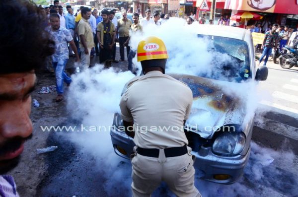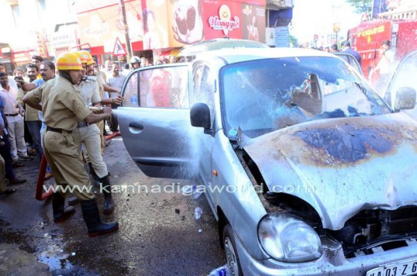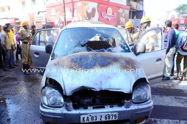 ಮಂಗಳೂರಿನ ಬೆಸೆಂಟ್ ಕಾಲೇಜು ಸಮೀಪ ಪಿ.ವಿ.ಎಸ್.ಕಲಾಕುಂಜ ರಸ್ತೆಯಲ್ಲಿ ರಘುರಾಮ್ ಅವರ ಮನೆ ಇದೆ. ಗುರುವಾರ ಮಧ್ಯಾಹ್ನ ರಘುರಾಮ್ ಅವರು ಮನೆಯಿಂದ ಕಾರನ್ನು ಚಲಾಯಿಸಿಕೊಂಡು 200 ಮೀ. ದೂರ ತಲಪುವಷ್ಟರಲ್ಲಿ ಮುಂಭಾಗದ ಬೋನೆಟ್ನಲ್ಲಿ ಹೊಗೆಯಾಡುತ್ತಿರುವುದು ಕಂಡು ಬಂತು. ಕೂಡಲೇ ಕಾರು ನಿಲ್ಲಿಸಿ ಅವರು ಕೆಳಗೆ ಇಳಿದಿದ್ದು, ಬಳಿಕ ಸಮೀಪದಲ್ಲಿದ್ದ ಆಟೋ ರಿಕ್ಷಾ ಚಾಲಕರ ಸಹಾಯದಿಂದ ನೀರು ಚಿಮುಕಿಲಾಯಿತು. ಬೆಂಕಿ ಶಮನವಾಗದೆ ಇದ್ದಾಗ ಅಗ್ನಿ ಶಾಮಕ ಠಾಣೆಗೆ ಮಾಹಿತಿ ನೀಡಲಾಯಿತು. ಪಾಂಡೇಶ್ವರದ ಅಗ್ನಿ ಶಾಮಕ ಠಾಣೆಯ ಅಧಿಕಾರಿ ಮತ್ತು ಸಿಬಂದಿ ಸ್ಥಳಕ್ಕಾಗಮಿಸಿ ಬೆಂಕಿಯನ್ನು ನಂದಿಸಿದ್ದಾರೆ.