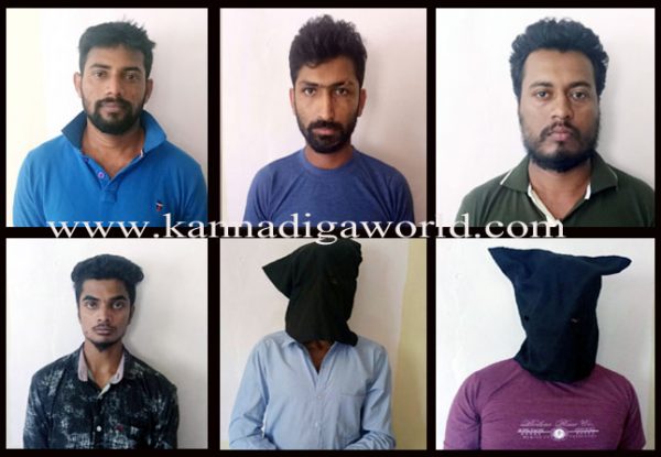 ಬಂಧಿತ ಆರೋಪಿಗಳನ್ನು ಗೋರಿಗುಡ್ಡ ವೆಲೆನ್ಸಿಯಾದ ನಿಶಾಕ್ ಪೂಜಾರಿ ಯಾನೆ ನಿಶಾಕ್ (28), ಗೋರಿಗುಡ್ಡ ನೆಹರೂ ರಸ್ತೆಯ ವಿನೇಶ್ ಕುಮಾರ್ (30), ಜಪ್ಪು ಕುಡ್ಪಾಡಿಯ ಸಂದೀಪ್ ಶೆಟ್ಟಿ (33), ಮುಳಿಹಿತ್ಲು ಟೈಲರ್ ರೋಡ್ನ ಸಚಿನ್ ಶೆಟ್ಟಿ ಯಾನೆ ಸಚಿನ್ (22),ಕಂಕನಾಡಿಯ ಗೋರಿಗುಡ್ಡೆ ನೆಕ್ಕರೆಮಾರ್ನ ಪ್ರವೀಣ್ ಪೂಜಾರಿ (42) ಹಾಗೂ ಜಪ್ಪಿನಮೊಗರು ತಂದೊಳಿಗೆಯ ಗಣೇಶ್ ಕುಲಾಲ್ ಯಾನೆ ಗಣೇಶ್ ಯಾನೆ ಗಂಟೆ (34) ಎಂದು ಗುರುತಿಸಲಾಗಿದೆ.