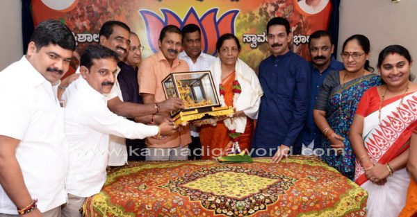 ಸಚಿವೆ ನಿರ್ಮಲಾ ಸೀತಾರಾಮನ್ ಅವರಿಗೆ ಗೀತೋಪದೇಶದ ಸ್ಮರಣಿಕೆಯನ್ನು ನೀಡಿ ಗೌರವಿಸಲಾಯಿತು. ಸಂಸದ ನಳಿನ್ ಕುಮಾರ್ ಕಟೀಲ್, ವಿಧಾನ ಪರಿಷತ್ ವಿರೋಧ ಪಕ್ಷದ ಮುಖ್ಯ ಸಚೇತಕ ಗಣೇಶ್ ಕಾರ್ಣಿಕ್, ಬಿಜೆಪಿ ವಿಭಾಗ ಪ್ರಭಾರಿ ಉದಯ ಕುಮಾರ್ ಶೆಟ್ಟಿ, ಜಿ.ಪಂ. ಅಧ್ಯಕ್ಷೆ ಮೀನಾಕ್ಷಿ ಶಾಂತಿಗೋಡು ಉಪಸ್ಥಿತರಿದ್ದರು. ಬಿಜೆಪಿ ಜಿಲ್ಲಾಧ್ಯಕ್ಷ ಸಂಜೀವ ಮಠಂದೂರು ಸ್ವಾಗತಿಸಿದರು.