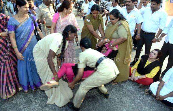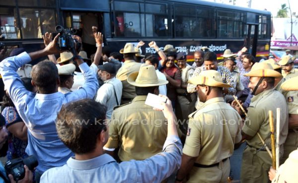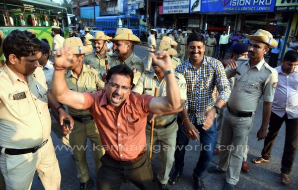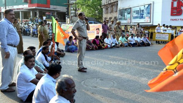 ಈ ಸಂದರ್ಭ ಬಿಜೆಪಿ ಮುಖಂಡರು ಹಾಗೂ ಕಾರ್ಯಕರ್ತರು ವಾಹನ ಸಂಚಾರಕ್ಕೆ ಅವಕಾಶ ನೀಡದೆ ರಸ್ತೆ ಮಧ್ಯೆ ಕುಳಿತು ಪ್ರತಿಭಟನೆ ನಡೆಸಿದರು. ಈ ವೇಳೆ ಮಧ್ಯೆ ಪ್ರವೇಶಿಸಿದ ಬಂದರು ಠಾಣಾ ಪೊಲೀಸರು ಹಾಗೂ ಪಾಂಡೆಶ್ವರ ಠಾಣಾ ಪೊಲೀಸರು ಪ್ರತಿಭಟನ ಕಾರರನ್ನು ಸುತ್ತುವರಿದು ಬಲವಂತವಾಗಿ ಬಂಧಿಸಿ ಠಾಣೆಗೆ ಕರೆದೊಯ್ದರು.