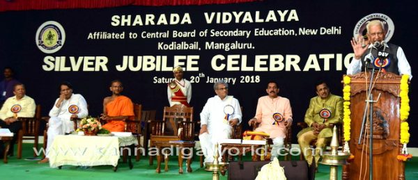 ಮಂಗಳೂರು, ಜನವರಿ.21: ಕರ್ನಾಟಕ ರಾಜ್ಯಪಾಲ ವಜುಭಾಯಿ ರೂಡಭಾಯಿ ವಾಲ ಅವರು ಮಂಗಳೂರಿನ ಶಾರದಾ ವಿದ್ಯಾಲಯದ ರಜತ ಮಹೋತ್ಸವ ಸಮಾರಂಭದ ಲಾಂಛನವನ್ನು ಶನಿವಾರ ಬಿಡುಗಡೆಗೊಳಿಸಿದರು.
