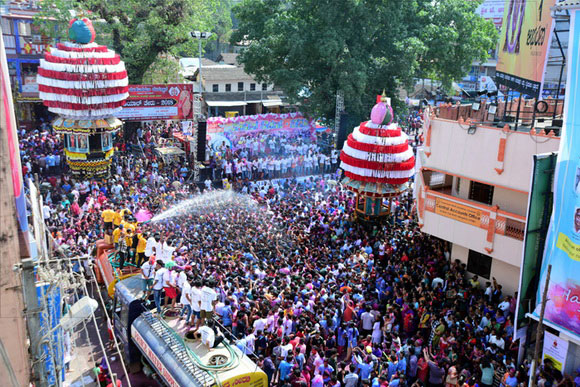 ಬೆಳಗ್ಗೆ ದೇವರ ಮೂರ್ತಿಯ ರಥಯಾತ್ರೆ ಆರಂಭಗೊಳ್ಳುತ್ತಿರುವಂತೆಯೇ ಆರಂಭಗೊಂಡ ಈ ಓಕುಳಿ ಹಬ್ಬ ಸಂಜೆಯವರೆಗೆ ನಡೆಯಿತು.