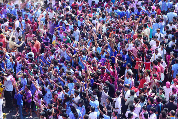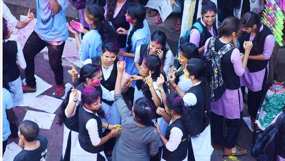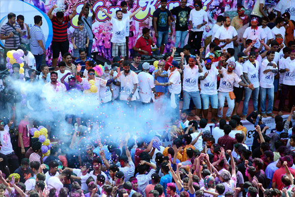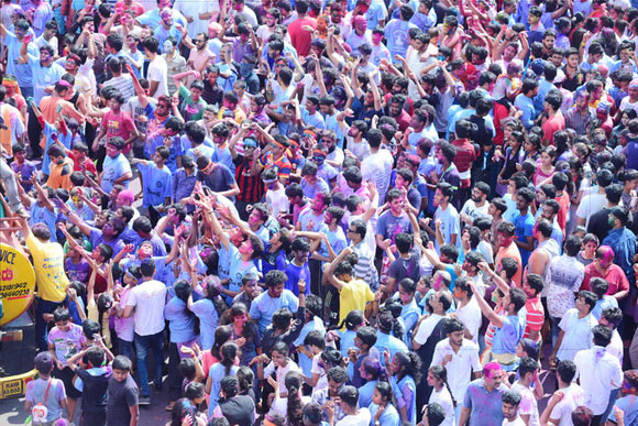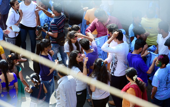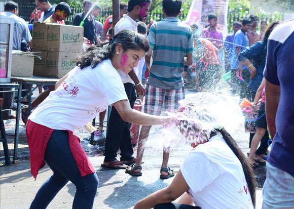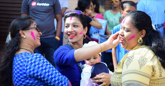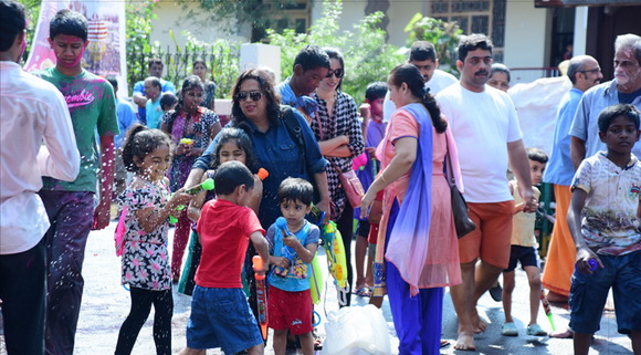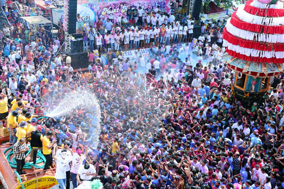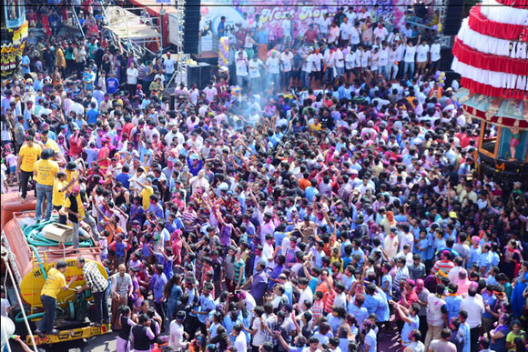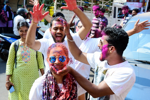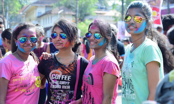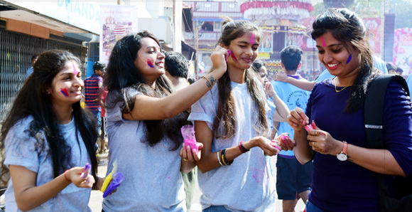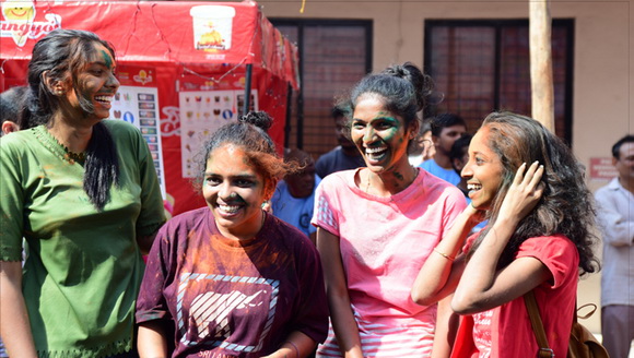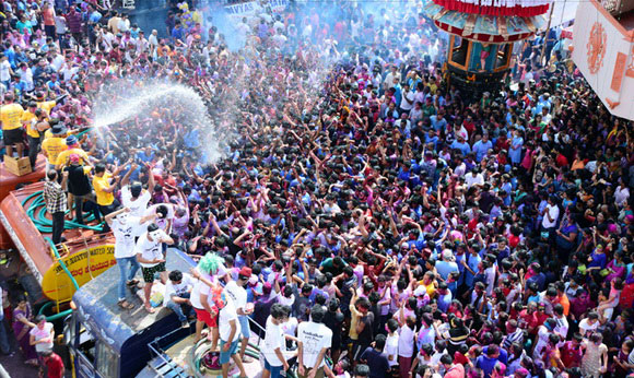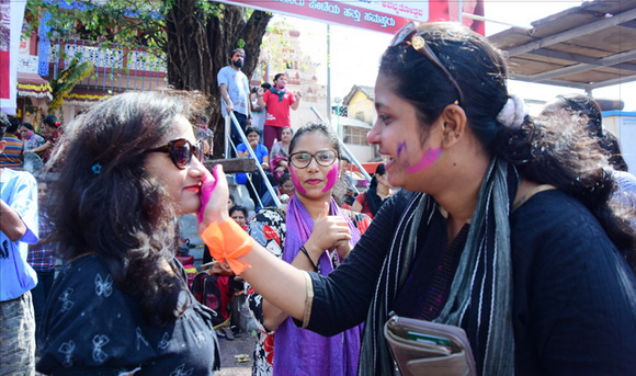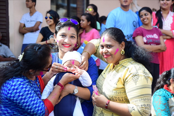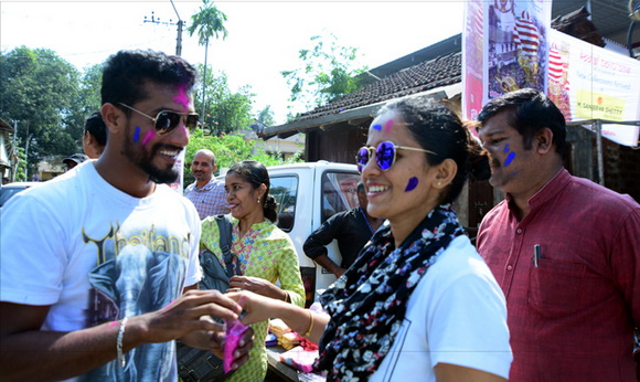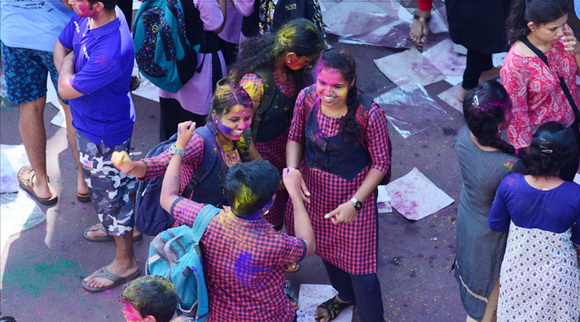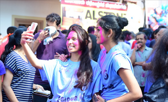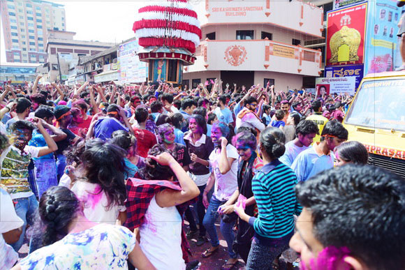 ದೇವಸ್ಥಾನದ ಮುಂಭಾಗದಲ್ಲಿ ಬೃಹತ್ ವೇದಿಕೆಯನ್ನು ಹಾಕಲಾಗಿದ್ದು, ಕೆಳಗಡೆ ಸಾವಿರಾರು ಮಂದಿ ಬಣ್ಣಗಳನ್ನು ಪರಸ್ಪರ ಹಚ್ಚಿಕೊಳ್ಳುತ್ತಾ ಸಂಗೀತ ಲಯಕ್ಕೆ ಹೆಜ್ಜೆ ಹಾಕಿ, ಕುಣಿದು ಕುಪ್ಪಳಿಸಿದರು. ಒಂದೆಡೆ ಯುವಕರು ಬಣ್ಣಗಳ ಲೋಕದಲ್ಲಿ ತಮ್ಮನ್ನು ತೊಡಗಿಸಿಕೊಂಡಿದ್ದರೆ, ಅಲ್ಲಲ್ಲಿ ಮಕ್ಕಳು ಪಿಚಕಾರಿಗಳಲ್ಲಿ ಬಣ್ಣ ನೀರು ತುಂಬಿಸಿ, ಪರಸ್ಪರ ಚಿಮ್ಮಿಸುತ್ತಾ ಖುಷಿ ಪಟ್ಟರು. ಸಣ್ಣ ಮಗುವಿನಿಂದ ಹಿಡಿದು ವಯೋವೃದ್ಧರವರೆಗೆ ಈ ಓಕುಳಿ ಸಂಭ್ರಮದಲ್ಲಿ ಪಾಲ್ಗೊಂಡರು.ಮತ್ತೆ ಹಲವರು ದೂರದಲ್ಲಿ ಈ ಸಂಭ್ರಮದ ಓಕುಳಿ ಹಬ್ಬವನ್ನು ಕಣ್ಣು ತುಂಬಿಸಿದರು.