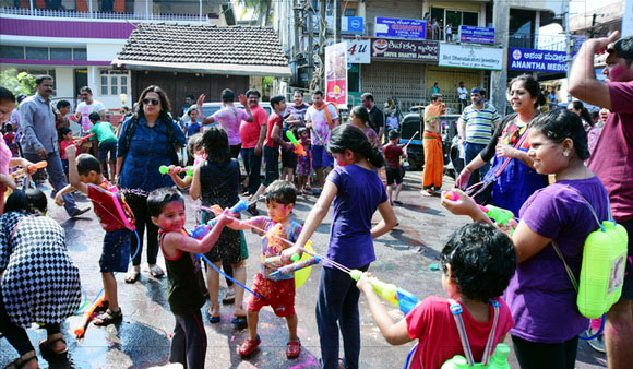 ಮಂಗಳೂರು: ನಗರದ ರಥಬೀದಿಯ ವೆಂಕರಮಣ ದೇವಸ್ಥಾನದ ಆವರಣದಲ್ಲಿ ಗುರುವಾರ ಕೊಡಿಯಾಲ ತೇರು ಪ್ರಯುಕ್ತ ಓಕುಳಿ ಹಬ್ಬ ನಡೆಯಿತು. ಓಕುಳಿ ಹಬ್ಬದಲ್ಲಿ ಸಾವಿರಾರು ಮಂದಿ ಭಾಗವಹಿಸಿ ಬಣ್ಣಗಳ ಸಂಭ್ರಮದಲ್ಲಿ ತಮ್ಮನ್ನು ತೊಡಗಿಸಿಕೊಂಡರು.