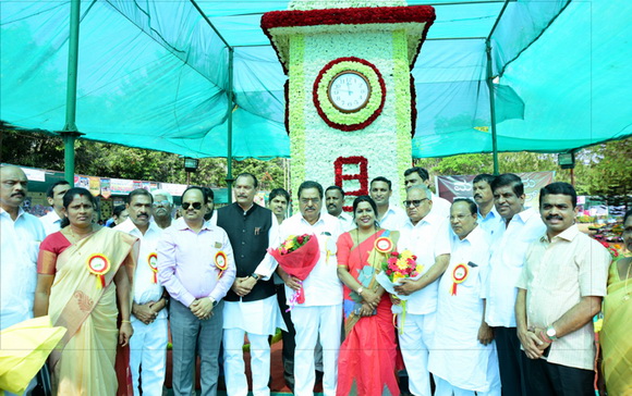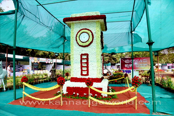 ಈ ವರ್ಷದ ಪ್ರದರ್ಶನದಲ್ಲಿ ಮಂಗಳೂರು ಕ್ಲಾಕ್ ಟವರ್ ಹೂ ವಿನ್ಯಾಸ ಮಾದರಿ ನಿರ್ಮಿಸಲಾಗಿದ್ದು, ಸಚಿವ ಯು.ಟಿ.ಖಾದರ್ ಅದರ ಉದ್ಘಾಟನೆಯನ್ನು ನೆರವೇರಿಸಿದರು. ಫಲಪುಷ್ಪ ಪ್ರದರ್ಶನದಲ್ಲಿ ಈಬಾರಿಯ ಪ್ರಮುಖ ಆಕರ್ಷಣೆ ಕ್ಲಾಕ್ ಟವರ್. ಹೂವಿನಿಂದ ಅಲಂಕೃತವಾದ ಕ್ಲಾಕ್ ಟವರ್ ಹಂಪನಕಟ್ಟೆಯಲ್ಲಿ ಹಿಂದಿದ್ದ ಬೃಹತ್ ಕ್ಲಾಕ್ ಟವರನ್ನು ನೆನಪಿಸುವಂತಿದೆ. 150 ಕೆಜಿ ಗುಲಾಬಿ ಹೂಗಳಿಂದ ರಚನೆಗೊಂಡಿರುವ ಈ ಹೂವಿನ ಕ್ಲಾಕ್ ಟವರ್ 12 ಅಡಿ ಎತ್ತರ, ಸುಮಾರು 5 ಅಡಿ ಅಗಲವಿದೆ. ಮಂಗಳೂರಿನ ಹಂಪನಕಟ್ಟೆಯಲ್ಲಿದ್ದ ಐತಿಹಾಸಿಕ ವಸ್ತುಗಳ ಪಟ್ಟಿಯಲ್ಲಿ ಕ್ಲಾಕ್ ಟವರ್ಗೆ ತನ್ನದೇ ರೀತಿಯ ಮನ್ನಣೆ ಇರುವುದರಿಂದ ಅದಕ್ಕೆ ಈ ಬಾರಿ ಆದ್ಯತೆ ನೀಡಲಾಗಿದ್ದು, ಇದನ್ನು ಮಂಗಳೂರು ಶಾರದಾ ಆರ್ಟ್ಸ್ನ ಮಹೇಶ್ ಮತ್ತು ತಂಡ ರಚಿಸಿದ್ದಾರೆ.